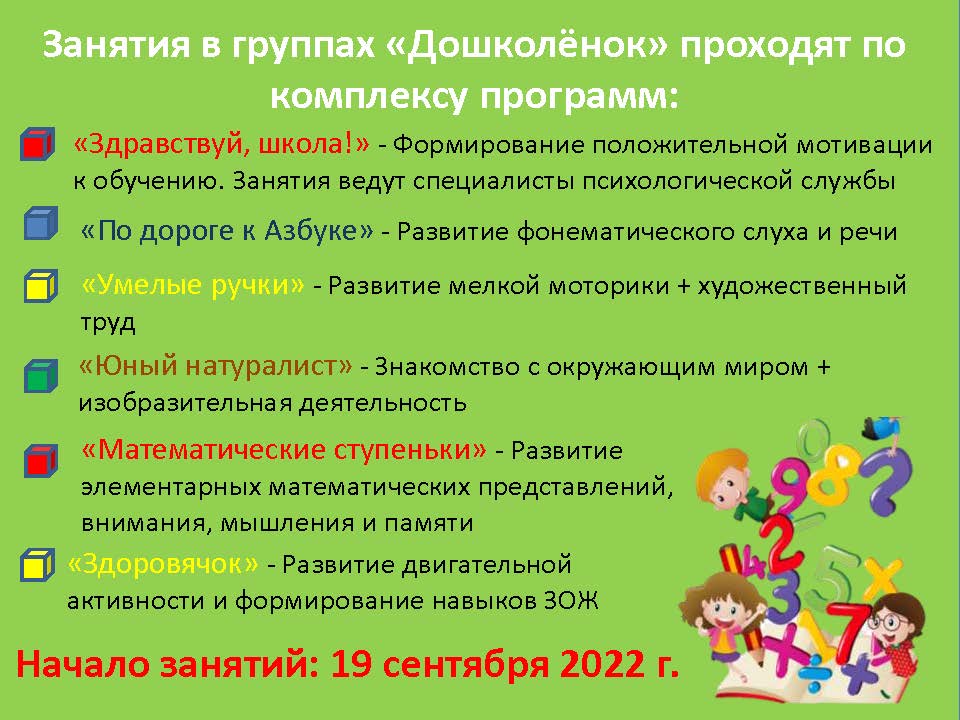Открыт набор в группы "Дошколёнок"! 06.09.2022